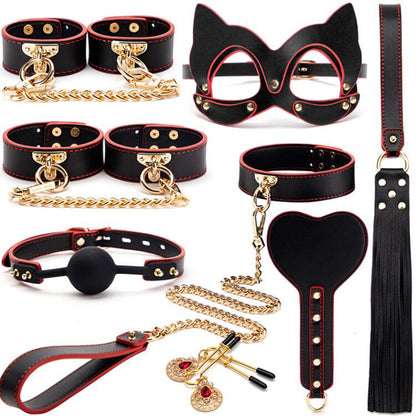 BDSM Kits Genuine Leather Bondage Set Fetish Handcuffs Collar Gag Whip Erotic Sex Toys For Women Couples Adult Games