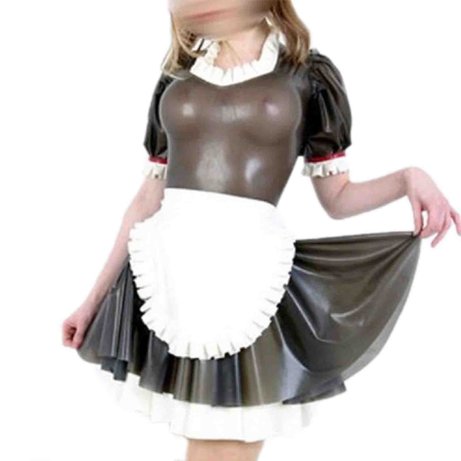 MONNIK Latex suit Tight Rubber Zip Maid Dress with Lace Trim Bow Trim underwear vest corset for fetish party wear