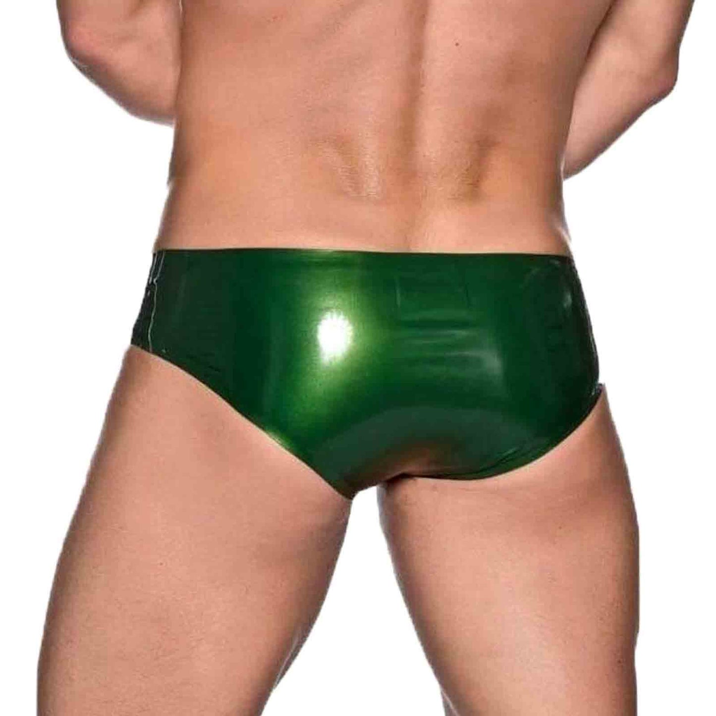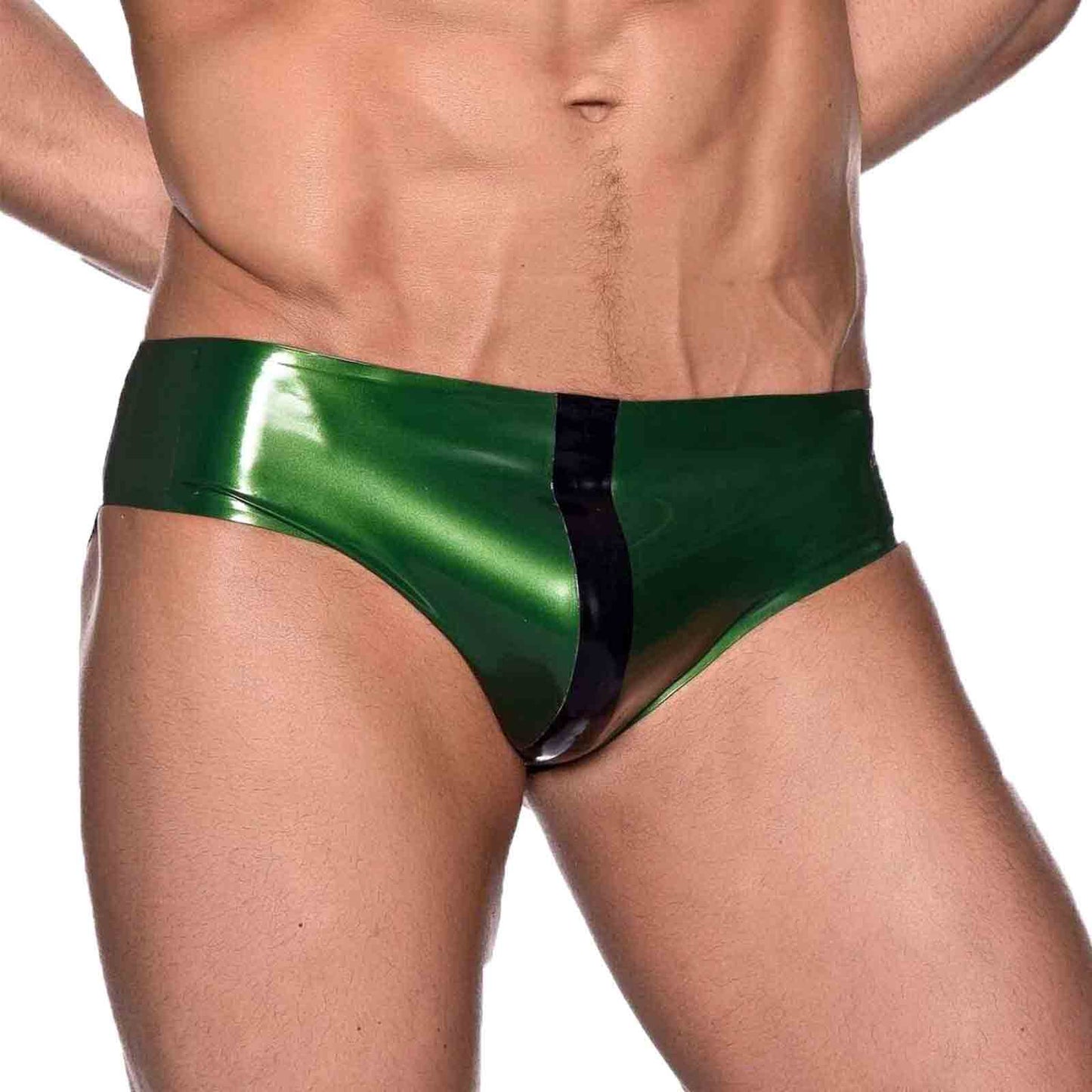 MONNIK Green and Black Trim Latex Briefs Fashion Rubber Men Shorts Tight Thong Underwear for Bodysuit
