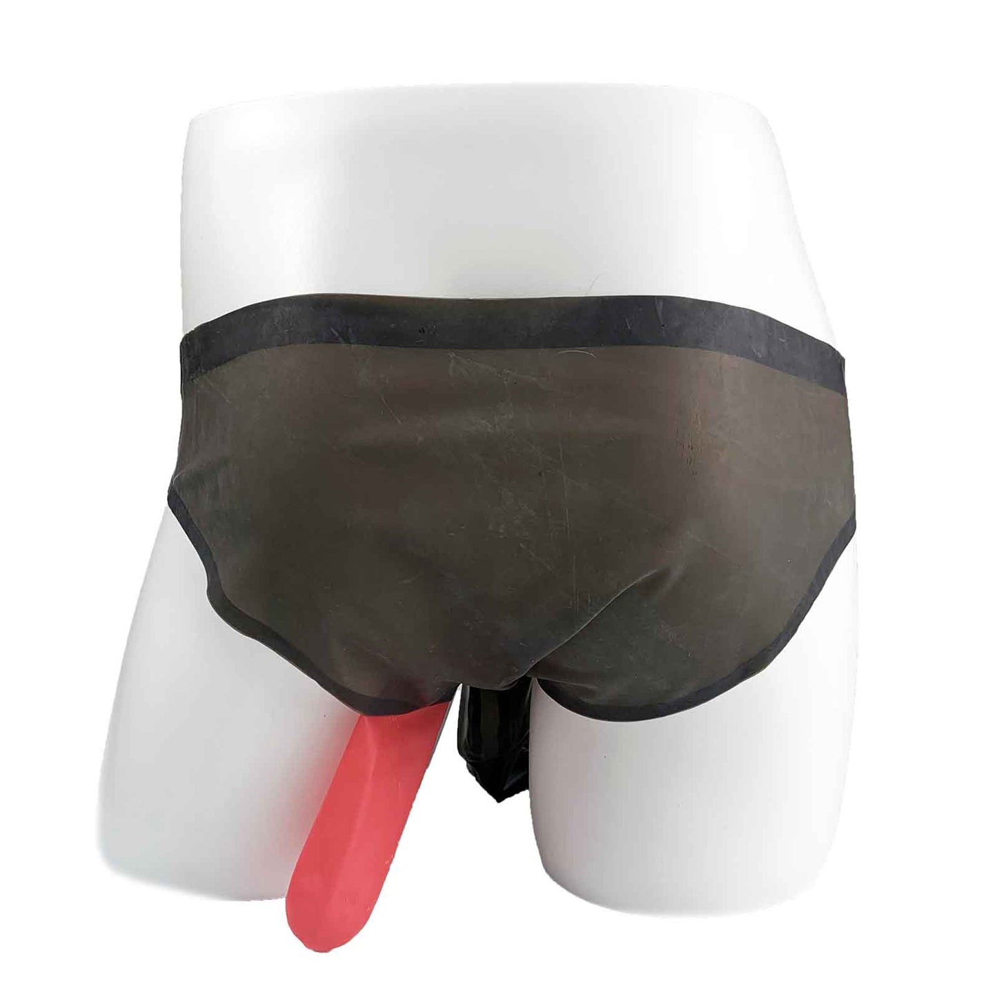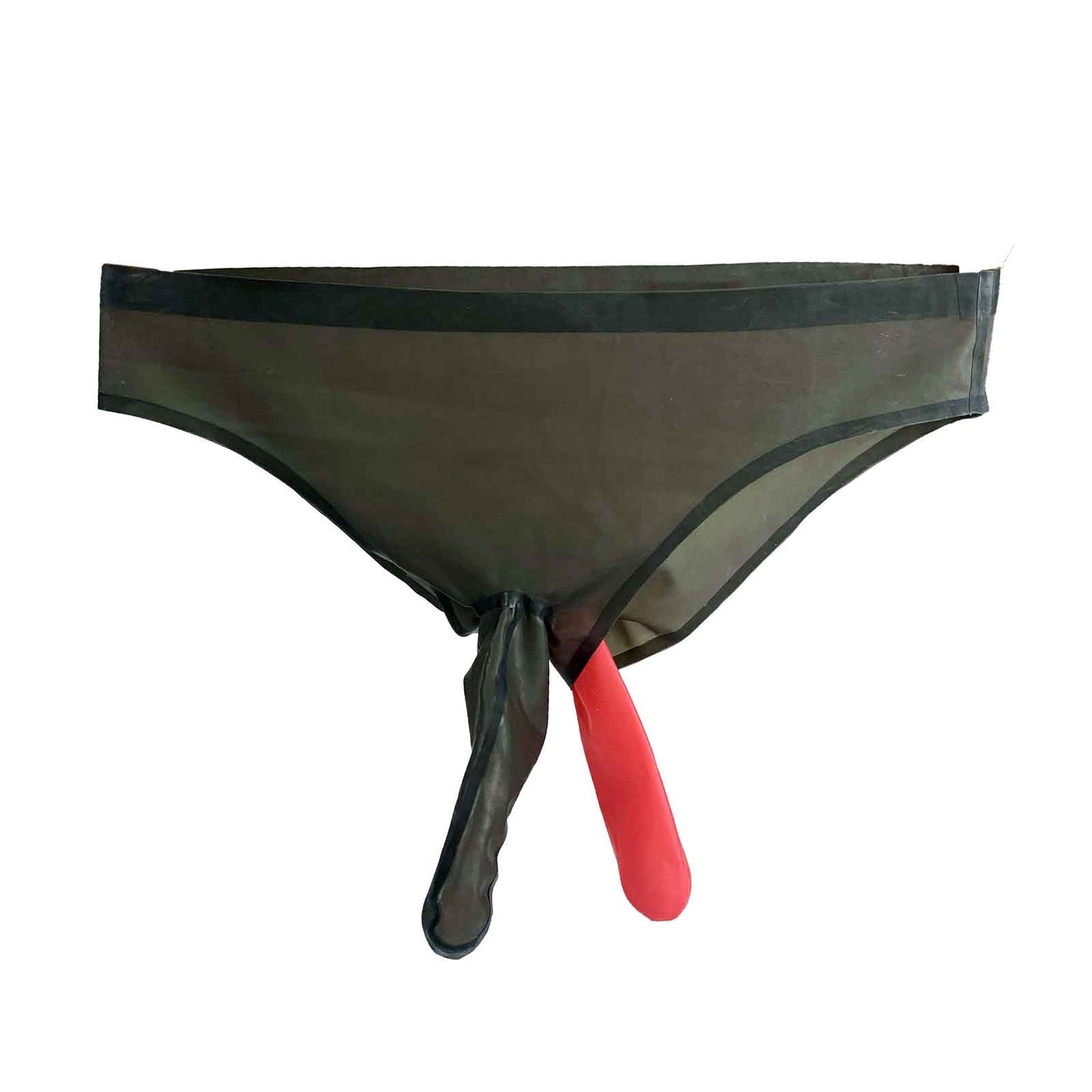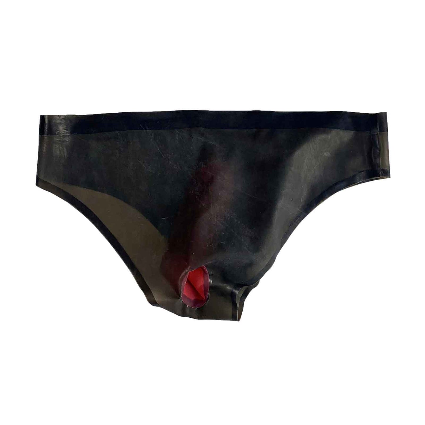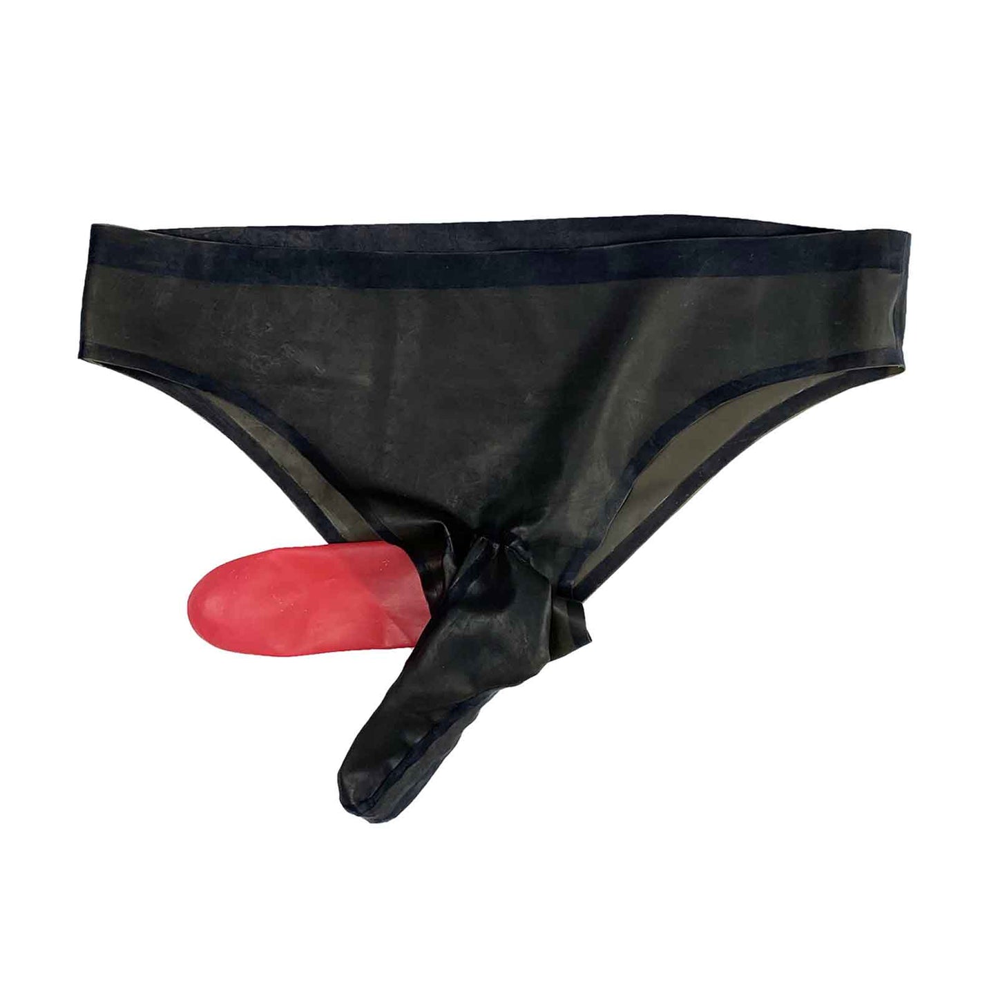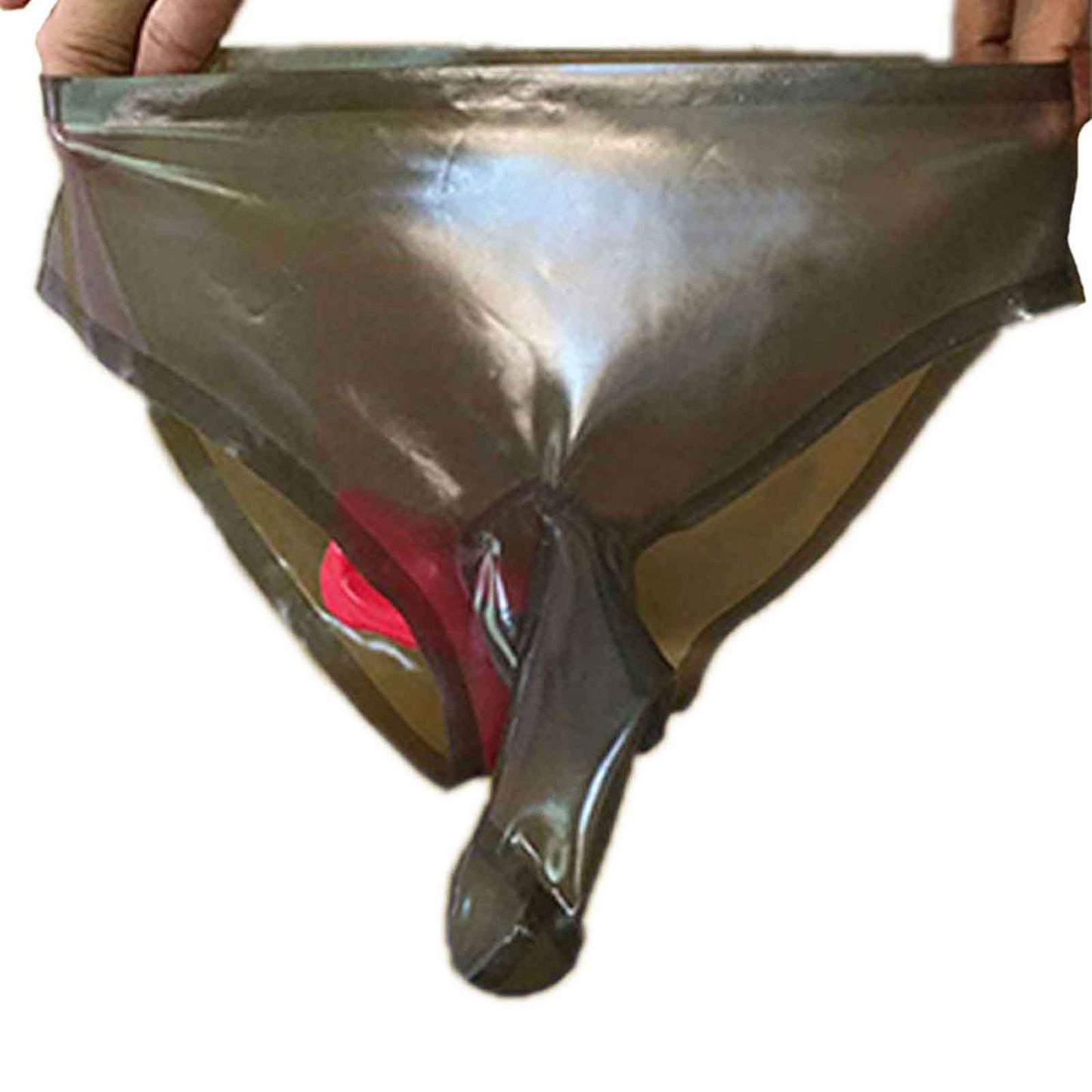 MONNIK Latex Briefs Rubber Underwear Black Shorts Personality High Stretch with Two Condom for Bodysuit Fetish Party