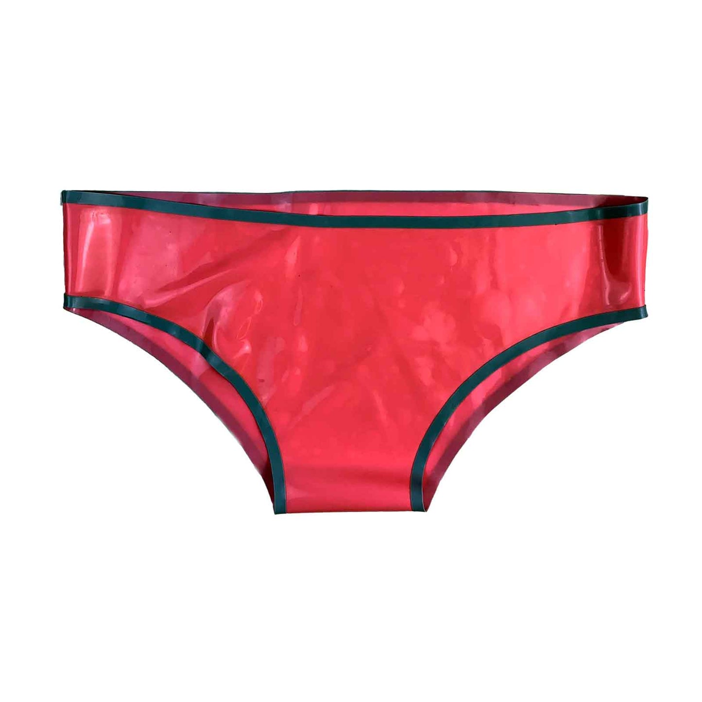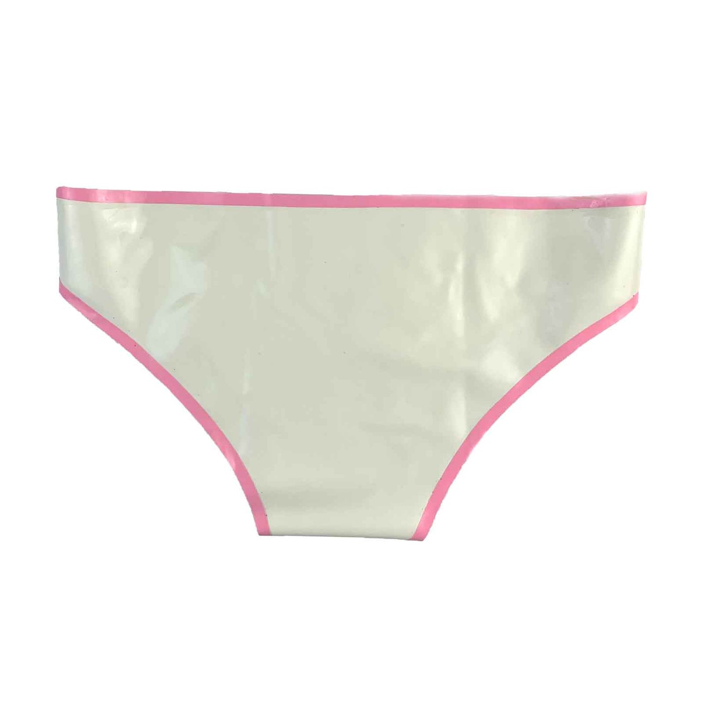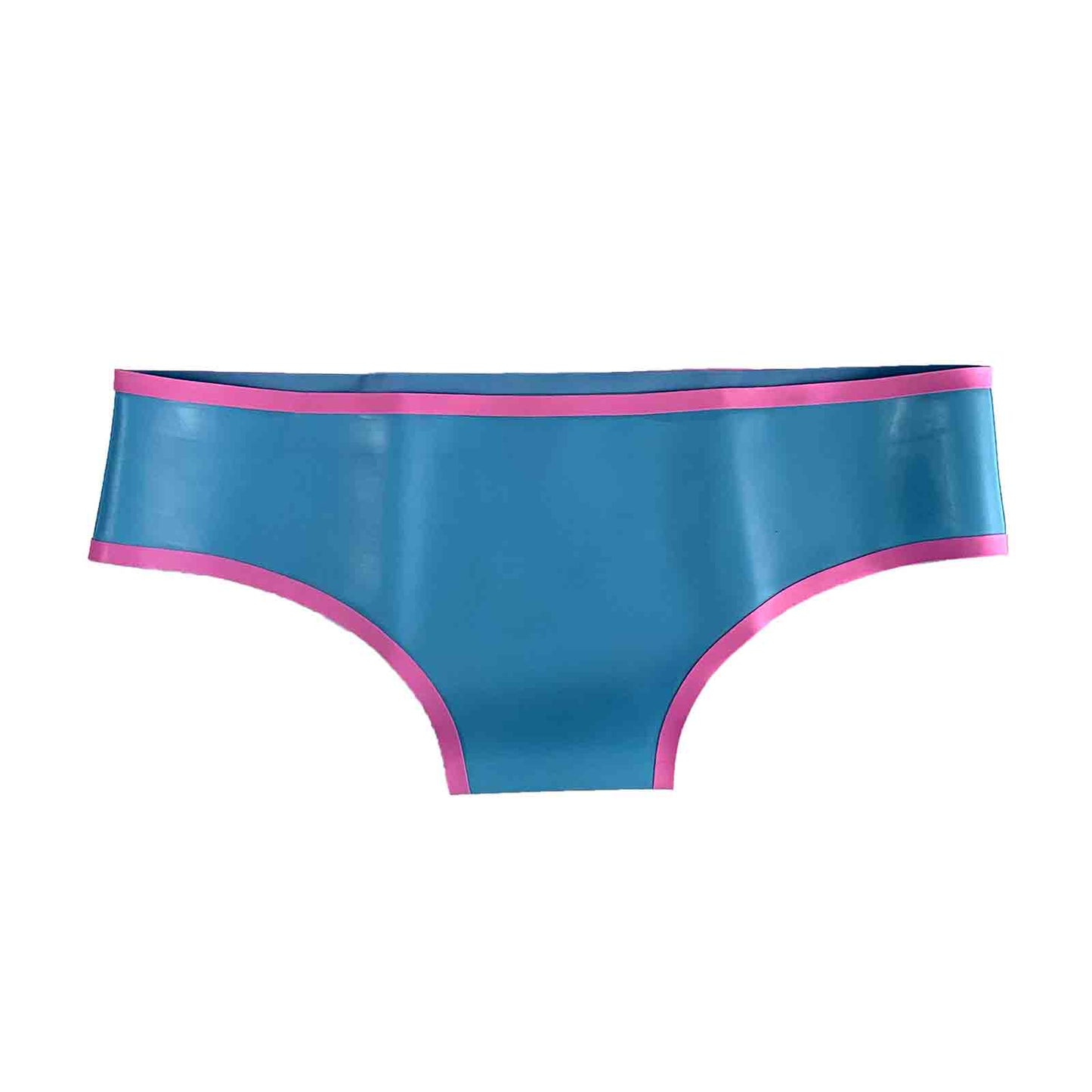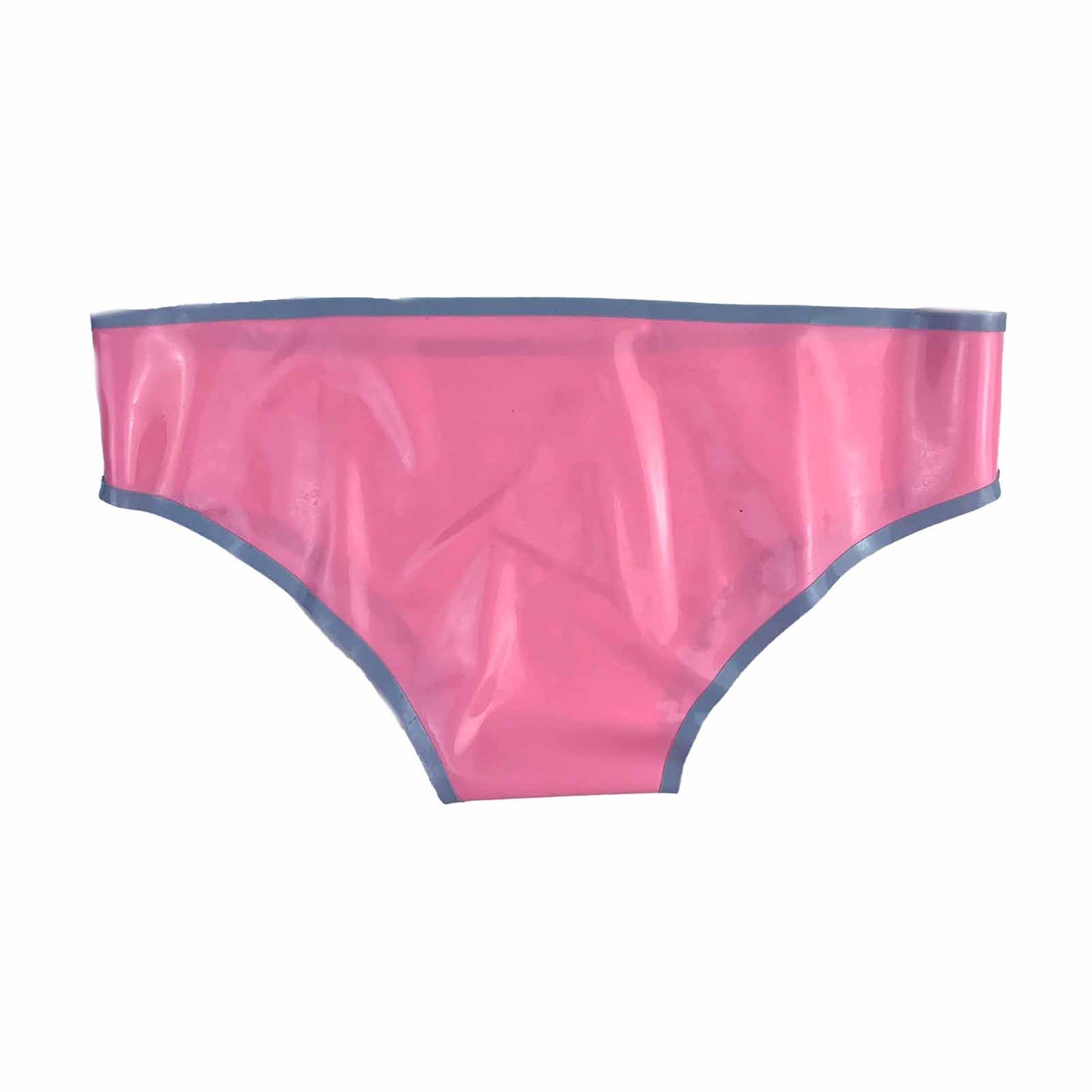MONNIK Latex Underwear Women Briefs and Low Waist Blue and Pink Trim Thongs for Ladies Catsuit Party wear