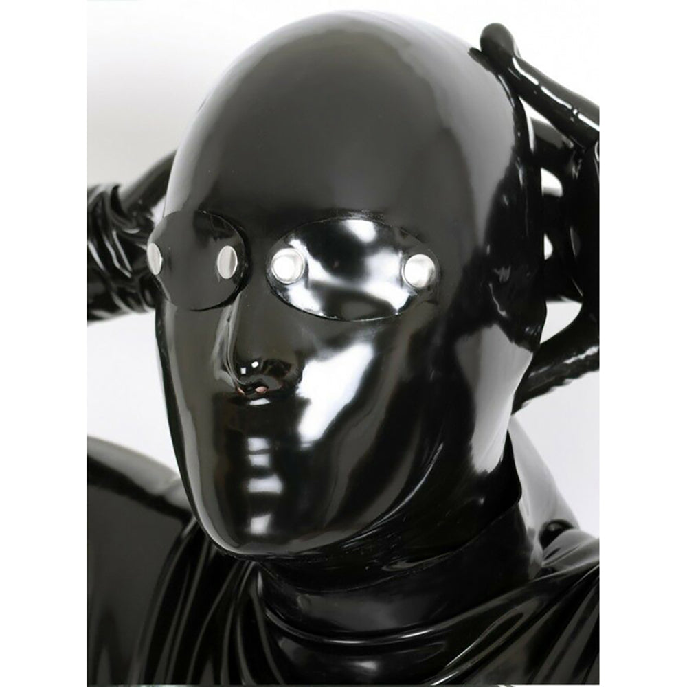 MONNIK Latex Mask Black Hood with Blind Cover and Rear Zipper for Bodysuit Fetish Cosplay Party Clubwear