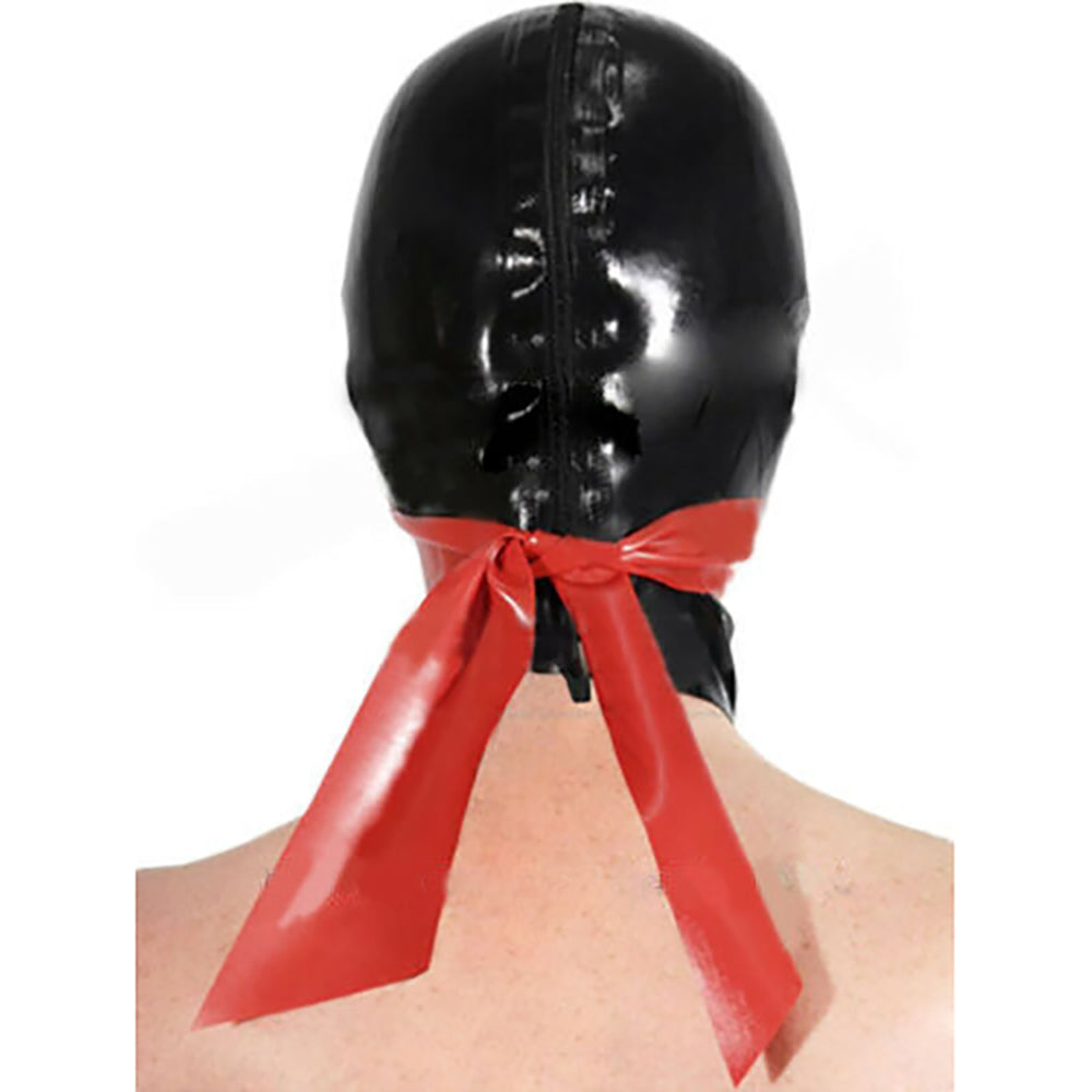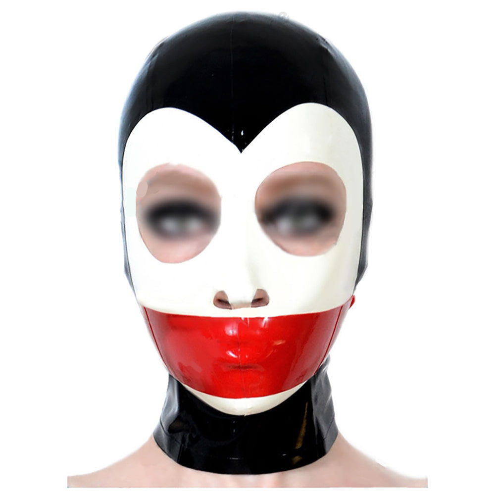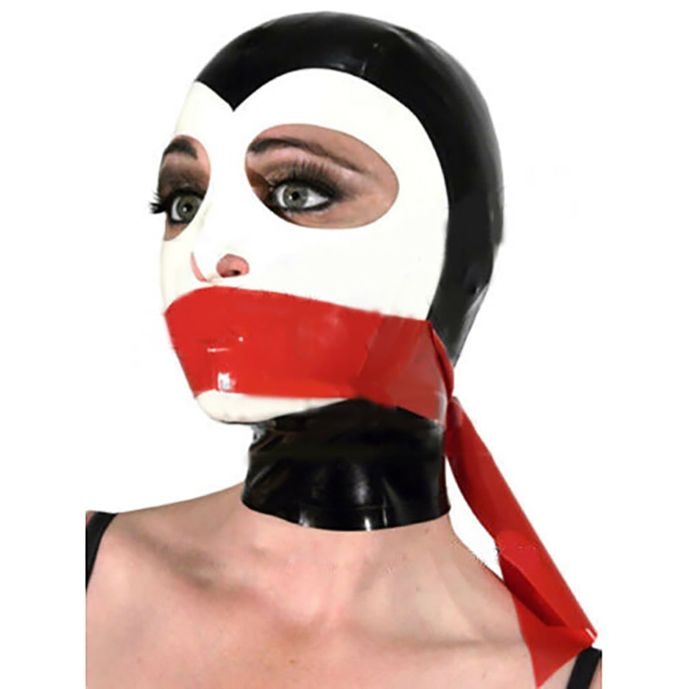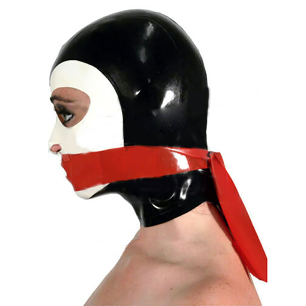 MONNIK Latex Unisex Mask White&Black Colors with Red Latex Band Handmade and Rear Zipper for Catsuit Cosplay