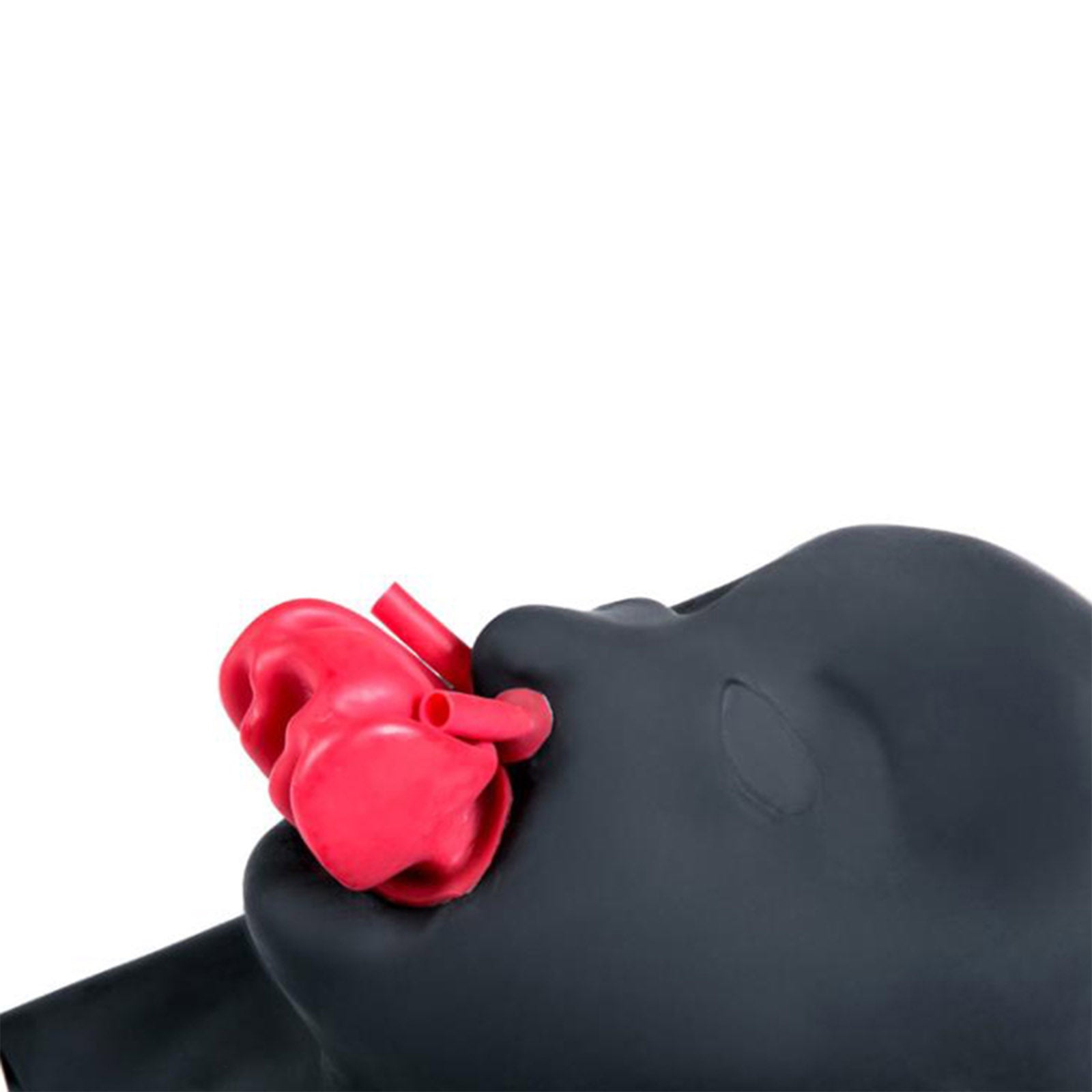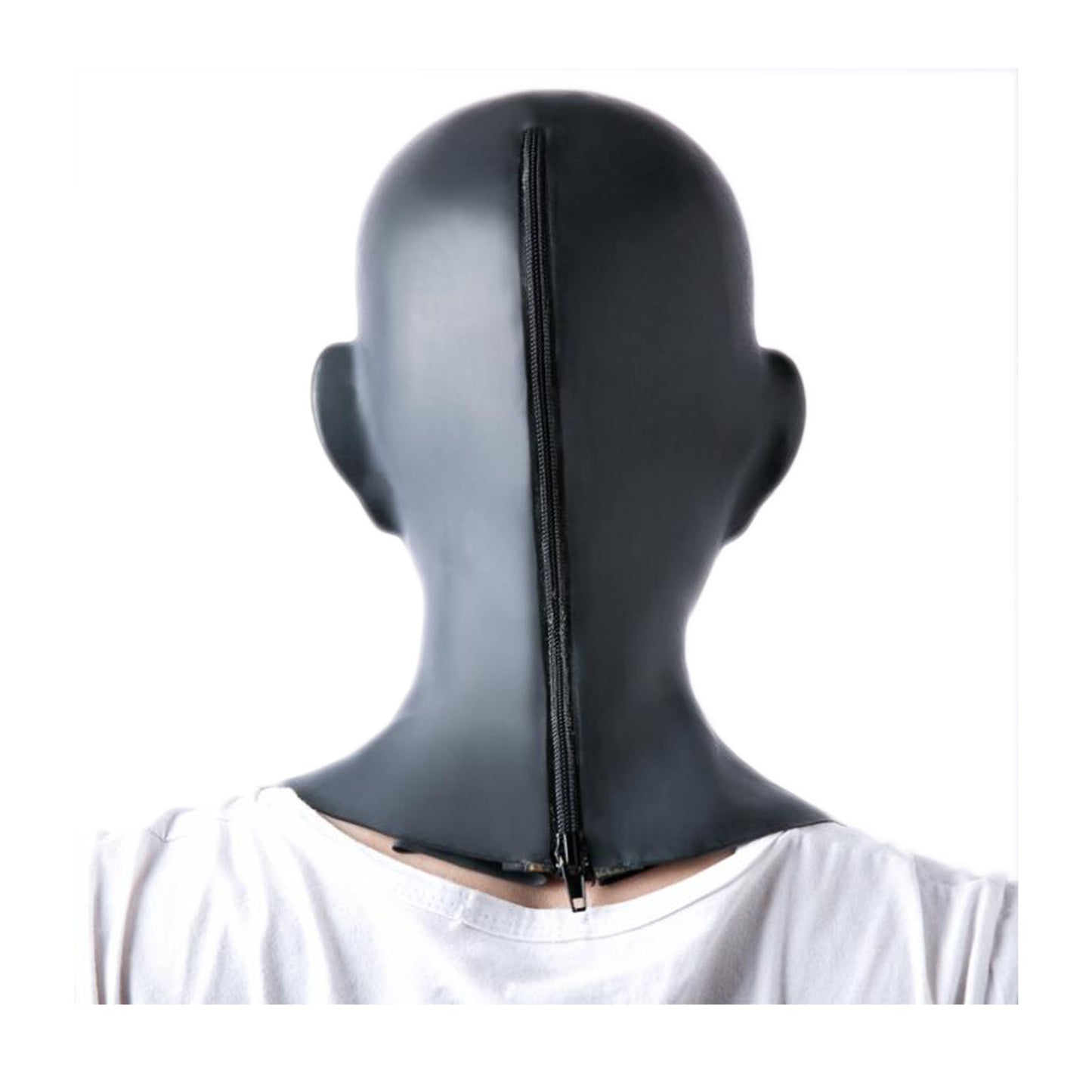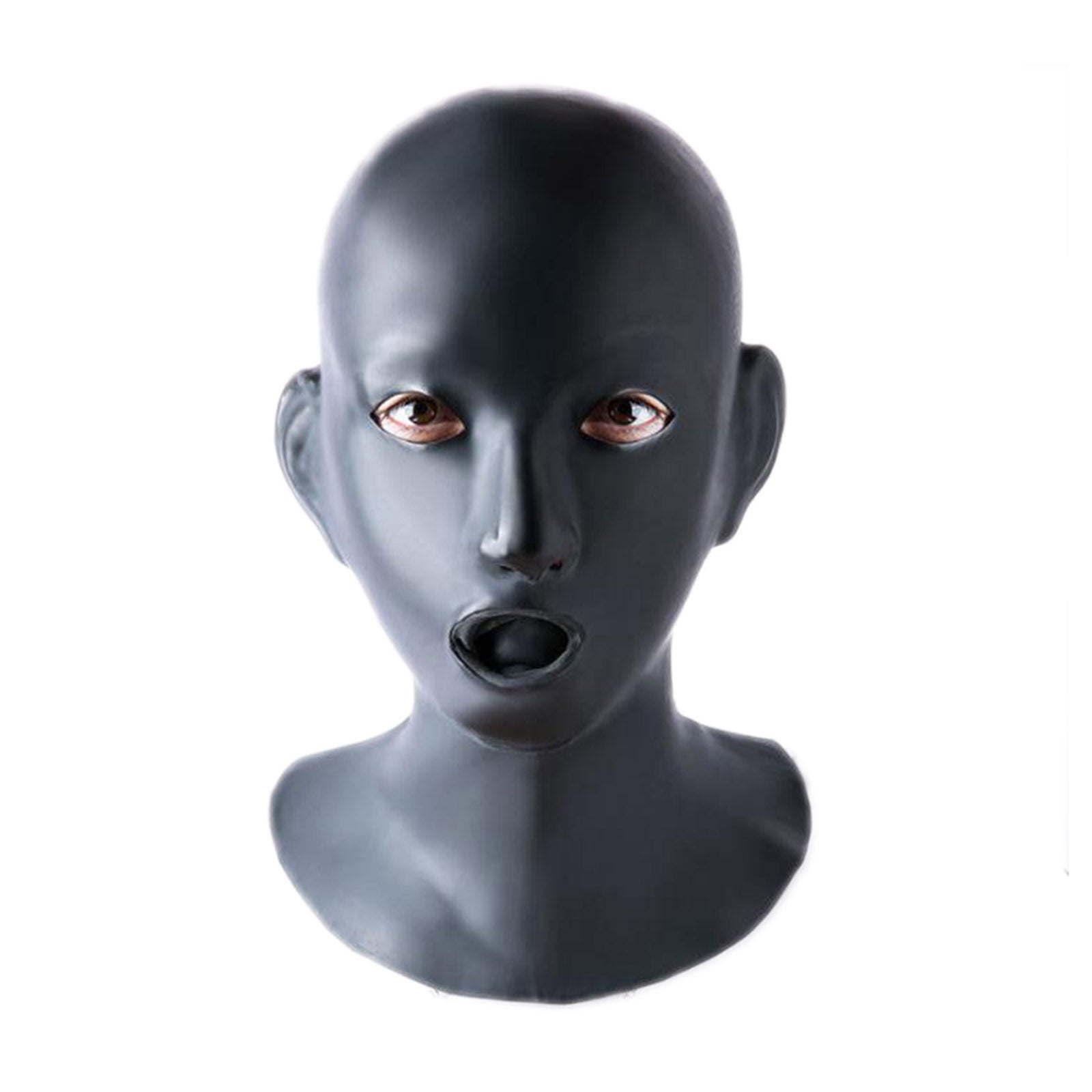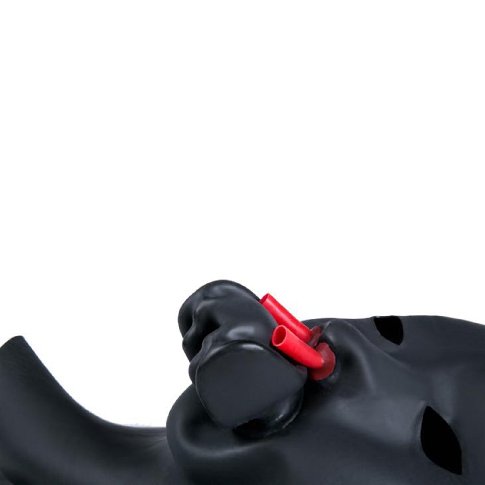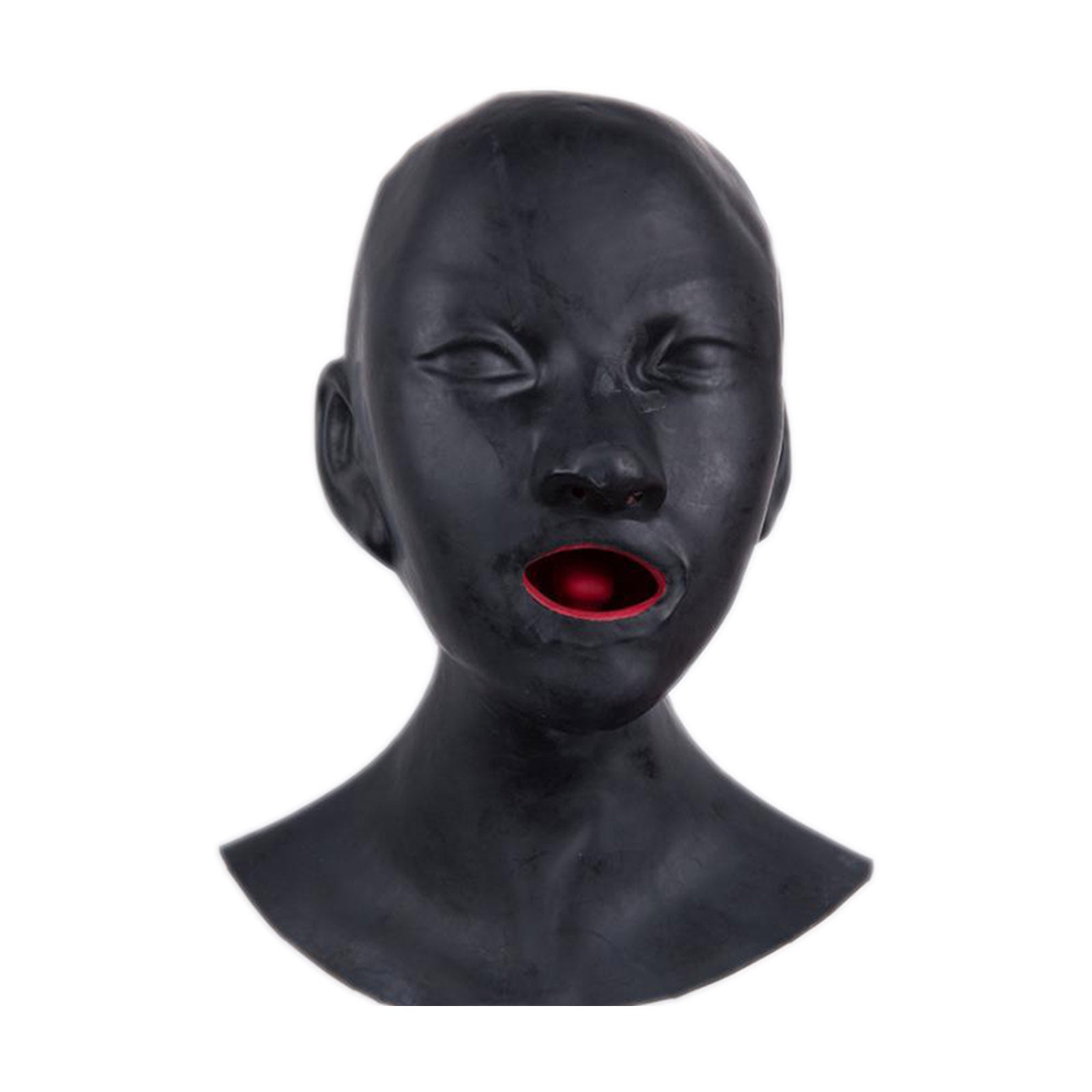 MONNIK Latex Women Mask Hood Close Eyes Fetish Hood Red Mouth Sheath Tongue Nose Tube with Rear Zipper