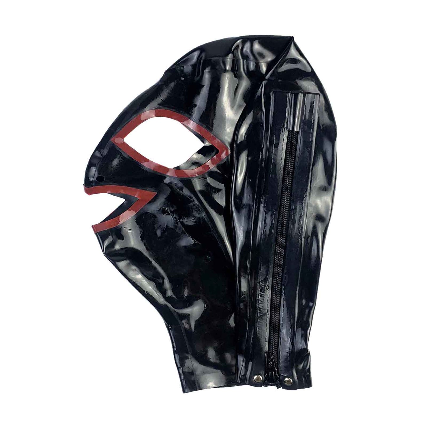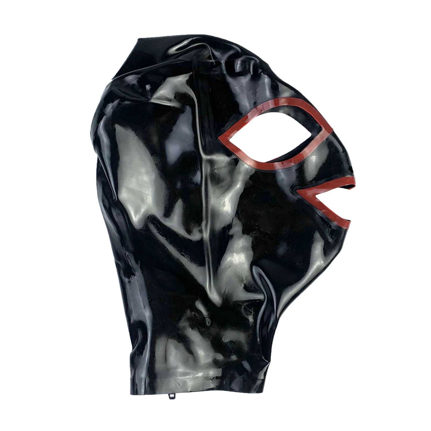 MONNIK Latex Hood Open Eyes Mouth with Red Trim Rubber Mask with Rear Zipper Handmade for Party Catsuit Cosplay